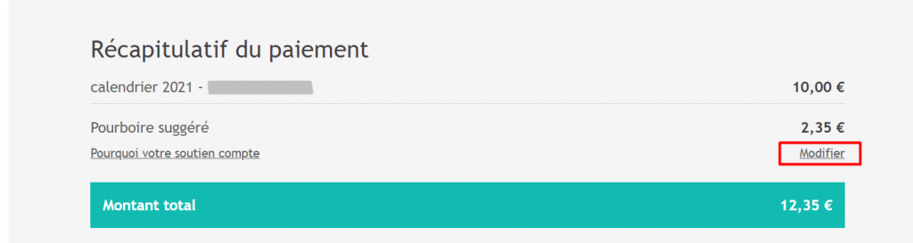 – Aller jusqu’à l’étape 3 “Paiement” – Cliquer sur modifier, sur la ligne “Pourboire suggéré” – Cocher la case “Je ne souhaite pas laisser de pourboire.”